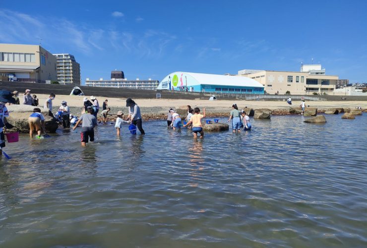 明石、大蔵海岸で、海の生きもの観察会とプラごみクリーン作戦