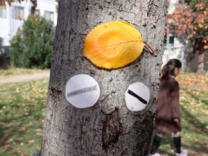 尼崎市立小学校3年生1クラスの子ども達と先生3人で、尼崎市立小学校の校庭で、ネイチャーゲーム(カムフラージュ、森の顔探し、森の色探し)をしました。